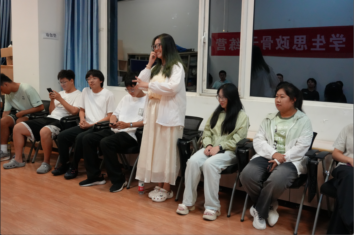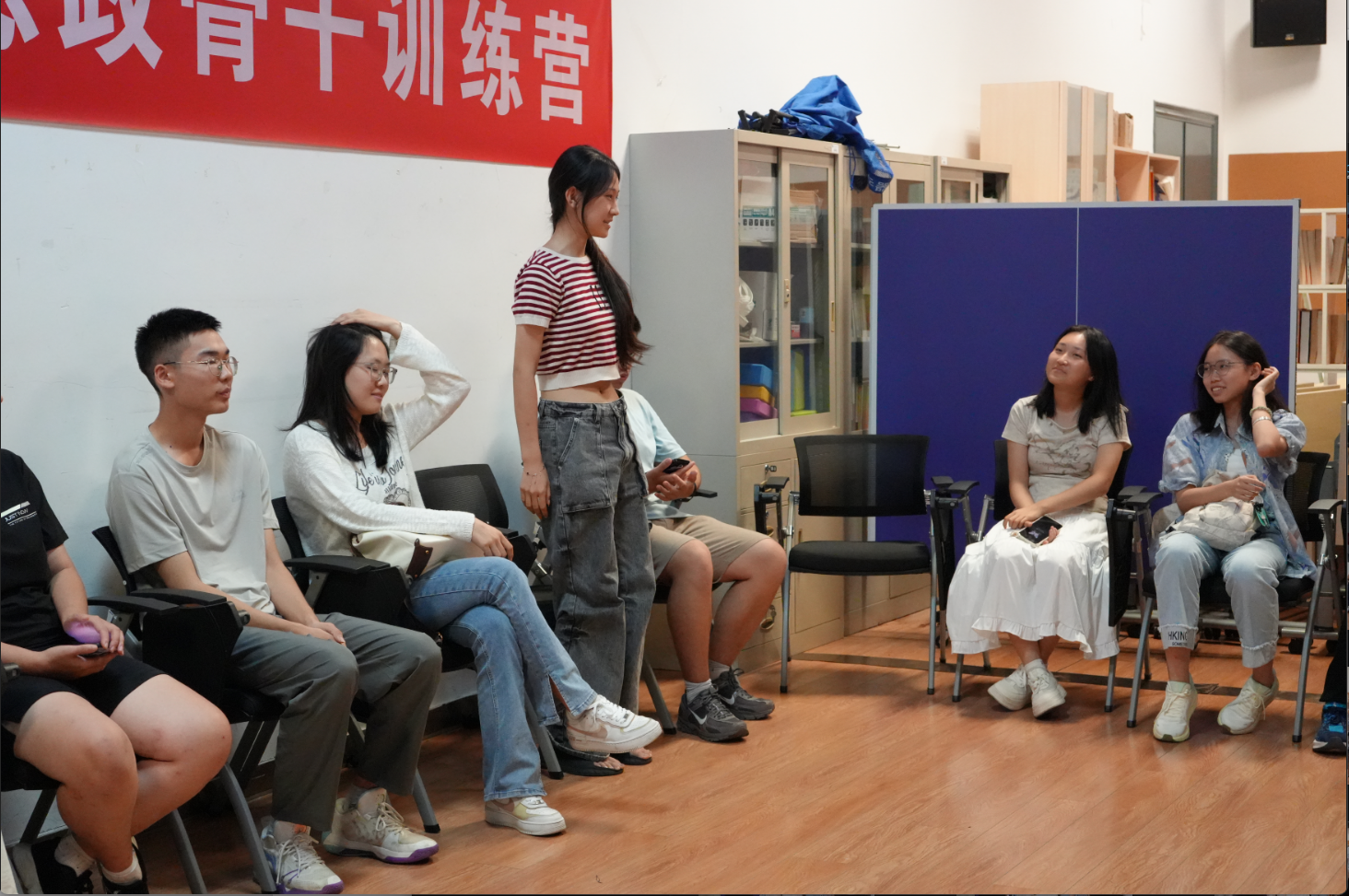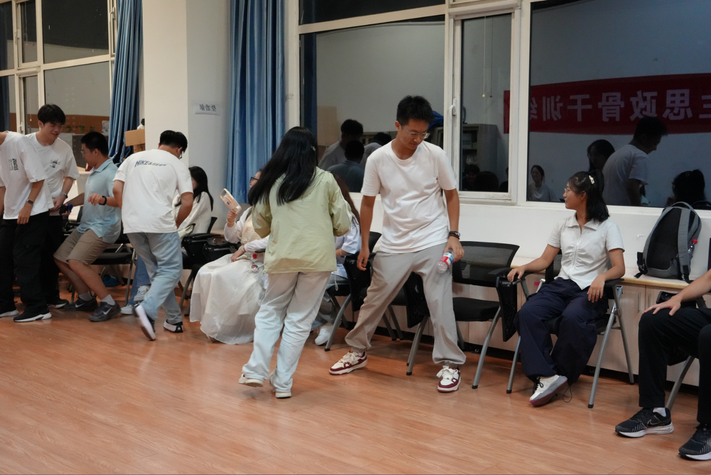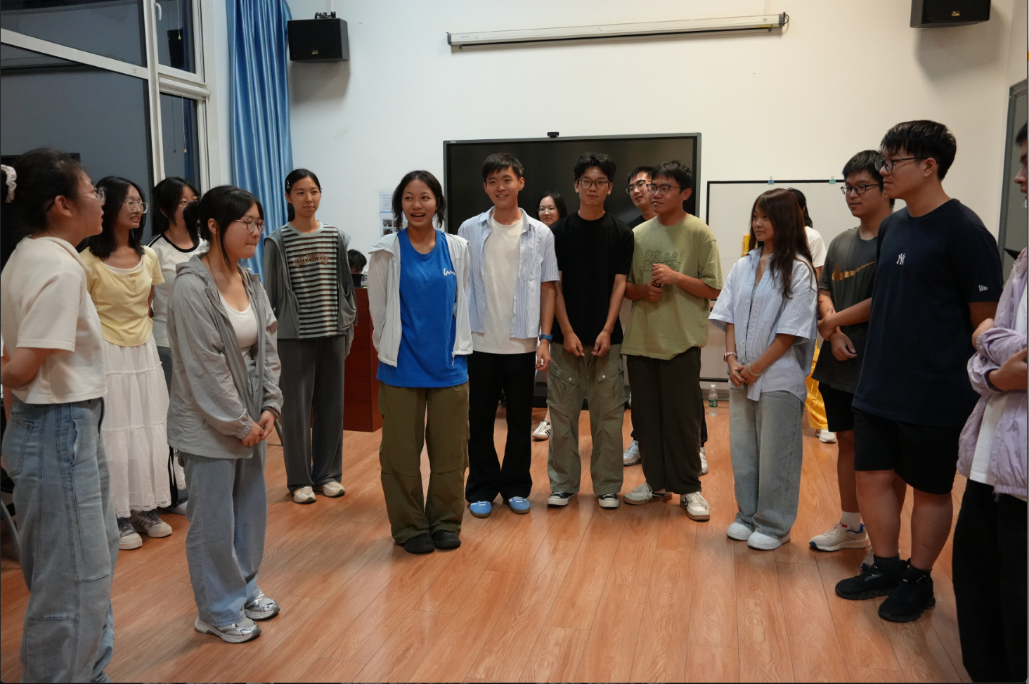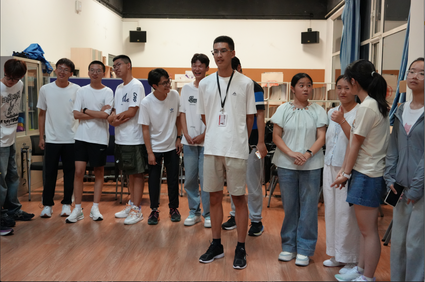 活动伊始,同学们通过简短的自我介绍初步相识。随后,“兴趣共鸣圈”游戏开启——大家围圈依次报出爱好,每当听到与自己相同的兴趣,便向前一步,默契指数瞬间飙升!