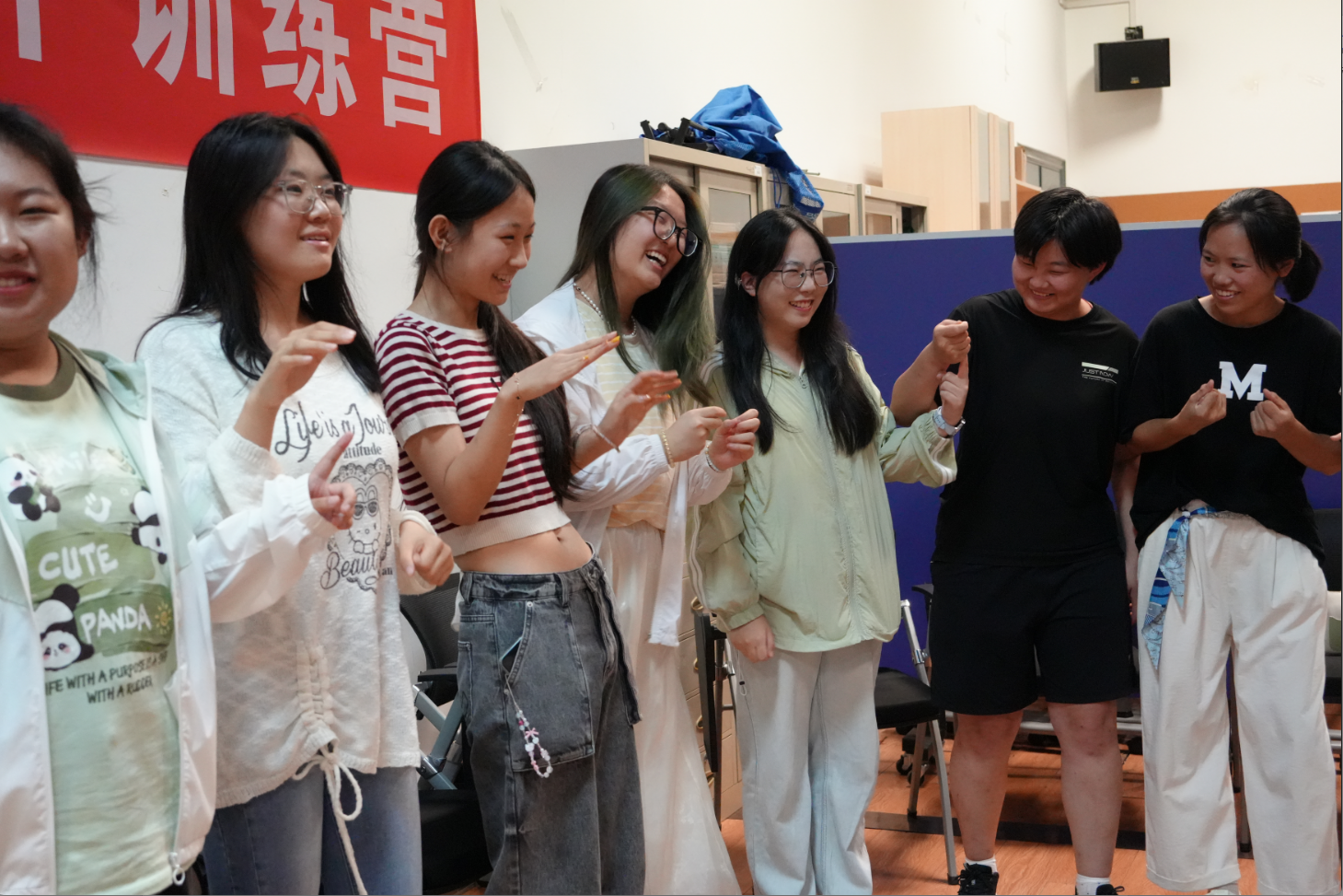 最后,“捉蜻蜓”游戏将气氛推向高潮。随着关键词“水”的出现,大家纷纷出手捕捉“蜻蜓”,反应力与笑声齐飞。作为小小的惩罚,被捉住次数最多的同学们为大家展示了自己的一技之长,教室化作一片欢乐的海洋。