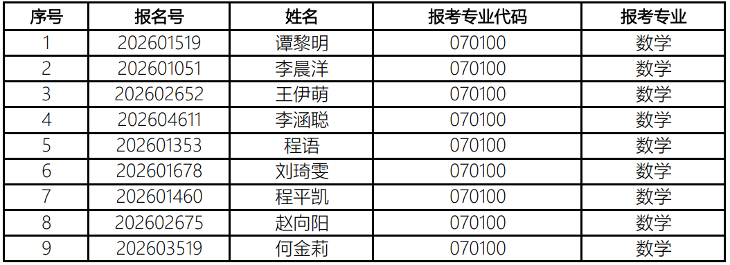数理学院2026年接收优秀应届本科毕业生推荐免试攻读研究生复试名单公示(第二批)