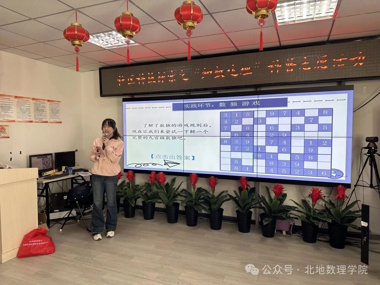 本次活动由数理学院2025级本科生胡瑞祖担任主讲,通过图形化数独和大气压实验等互动形式,引领社区小朋友探索数理科学的奥秘。