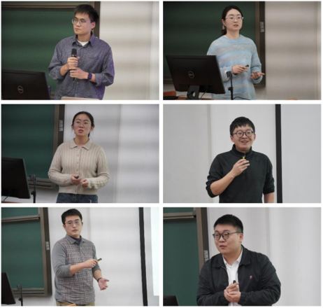 在学术成果交流环节中,刘洋、漆达镛、白祥、屈云飞、李格和单君六位青年教师围绕各自博士阶段以来的代表性成果展开系统阐述。他们的报告内容涵盖数学建模、理论物理、材料化学等多个方向,不仅呈现了个人研究主线与特色亮点,也展示了相关领域的重要进展,进一步促进了不同学科之间的深入交流与潜在合作。