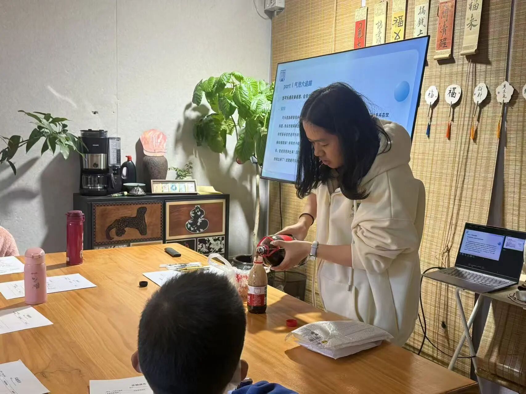 本次活动由数理学院2025级本科生何敏担任主讲人,通过动手实验,亲自带领小朋友探索可乐那些不为人知的奥秘。