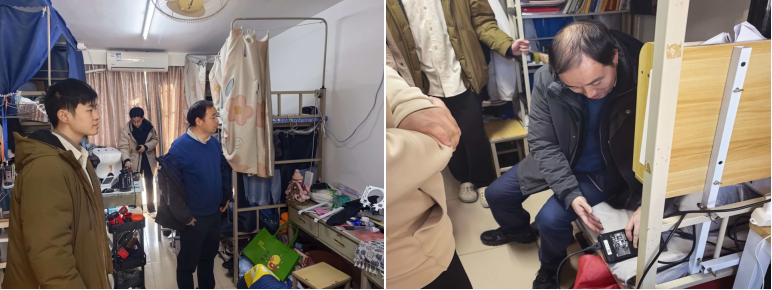下午,廉海荣副院长、余涛副院长、党委副书记李倩雯带领辅导员队伍深入学生宿舍,开展寒假前“敲门行动”。老师们逐一走访各宿舍,重点围绕用电安全、消防安全、物品存放等关键环节展开细致排查。仔细检查宿舍内是否存在违规电器、电源未关闭等问题,对发现的安全隐患现场督促整改;同时叮嘱学生离校前务必清理宿舍阳台杂物、关闭各类电器电源并拔掉插头,杜绝安全事故发生。