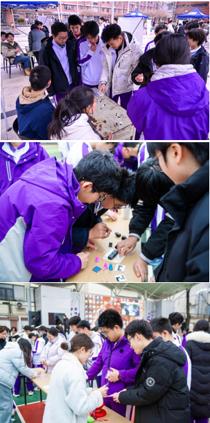 文化节游园会在我校夏日广场主会场及清华附中分会场顺利举行。主会场人潮涌动,欢声笑语不断,数语寻踪、环梦相承棋等10个趣味关卡前排起长队,同学们在动手动脑中感受逻辑之美与实验之趣;分会场的学子们也沉浸在数理探秘的快乐中。